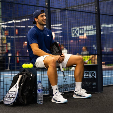 Las ADIDAS CRAZYQUICK BOOST Padel M White/Blue SS26, inspiradas en el juego de Ale Galán, combinan velocidad, estabilidad, potencia y compromiso ecológico para elevar tu nivel en cada partido.