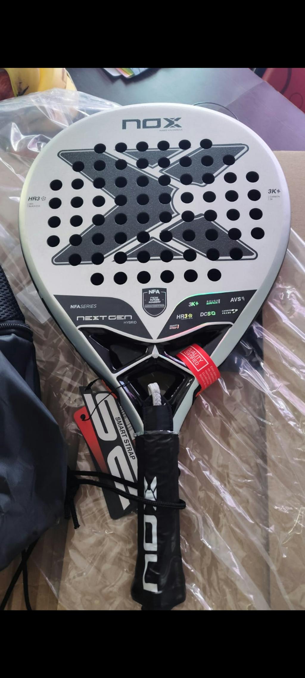 La NOX NEXTGEN PRO Hybrid 3K NFA Series 2025 es la pala oficial de los talentos emergentes de la Nox Future Academy (NFA), como Rama Valenzuela y Dylan Cuello. Diseñada para jugadores que buscan un equilibrio perfecto entre potencia y control, es la elección ideal para quienes quieren destacar en cada punto con total confianza.