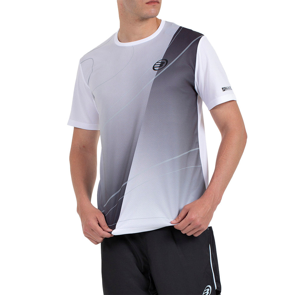 La BULLPADEL CUMBRE es una camiseta técnica pensada para jugadores que buscan un equilibrio entre rendimiento y diseño. Confeccionada en tejido de poliéster ligero y transpirable, permite una excelente circulación del aire y un secado rápido, manteniendo la piel fresca y seca incluso en los puntos más intensos.