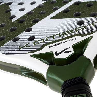 Como punto adicional, la superficie tiene un acabado rugoso mate, por lo que el jugador que quiera generar efectos cortados o liftados, lo podrá conseguir con mayor facilidad. Su formato redondo y balance bajo combinado con una disposición estratégica de los agujeros de la pala, contribuye a una mejor maniobrabilidad, mayor agilidad y una menor fatiga en el brazo, permitiendo al jugador mover la pala con rapidez y soltura. Esta combinación de forma redonda y balance bajo hace de la Kombat Krakatoa 2026 una pala ideal para un control absoluto en tus partidos